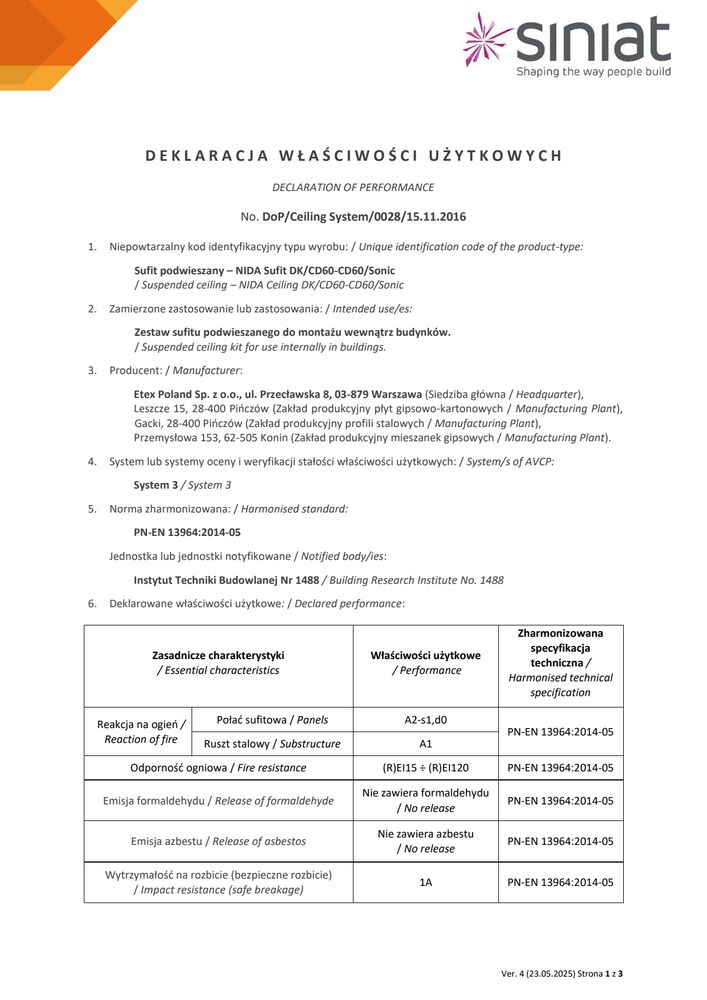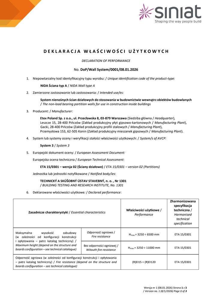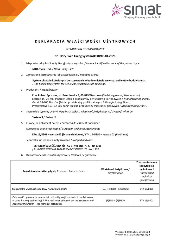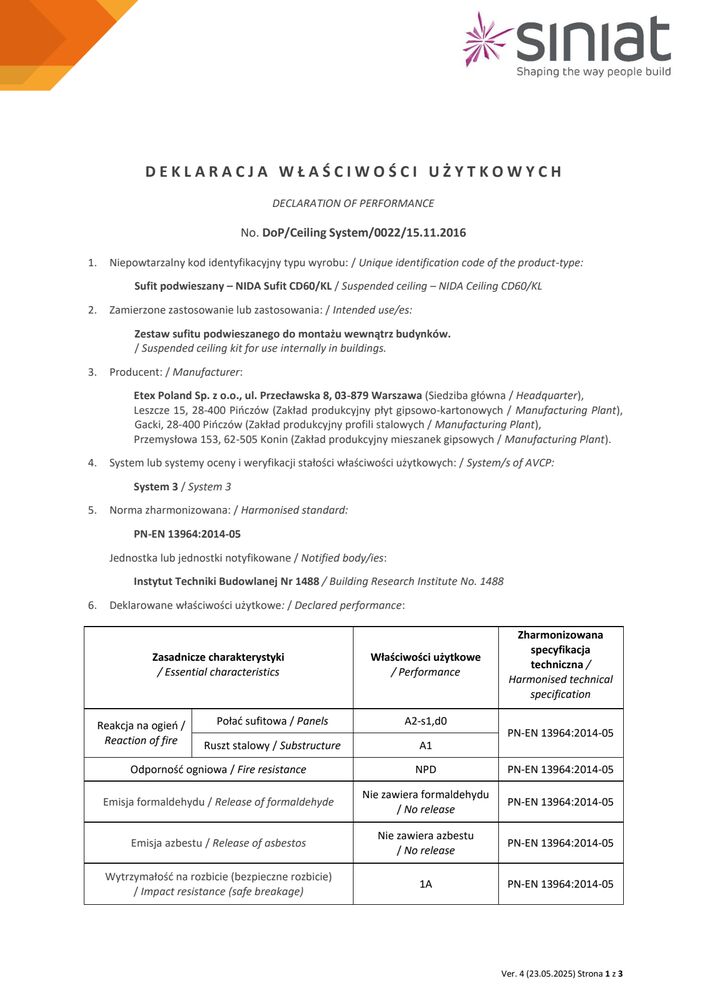Znajdziesz tutaj wszystkie niezbędne dokumenty techniczne Siniat. Klasyfikacje ogniowe, deklaracje właściwości użytkowych, karty produktów a także katalogi techniczne systemów suchej zabudowy.