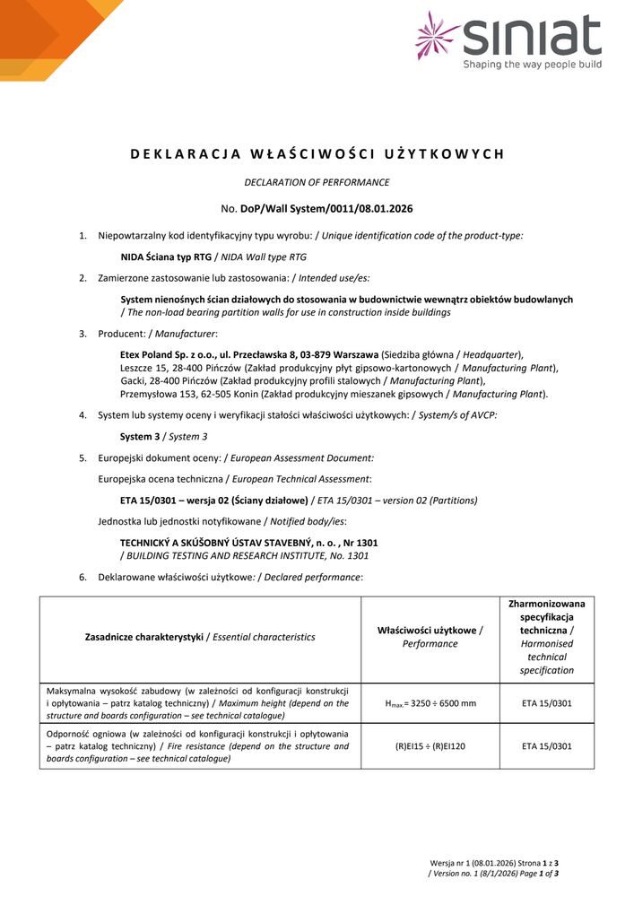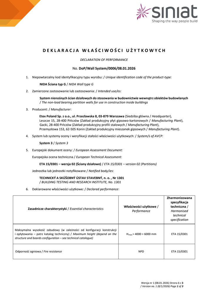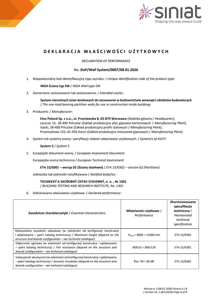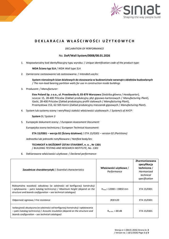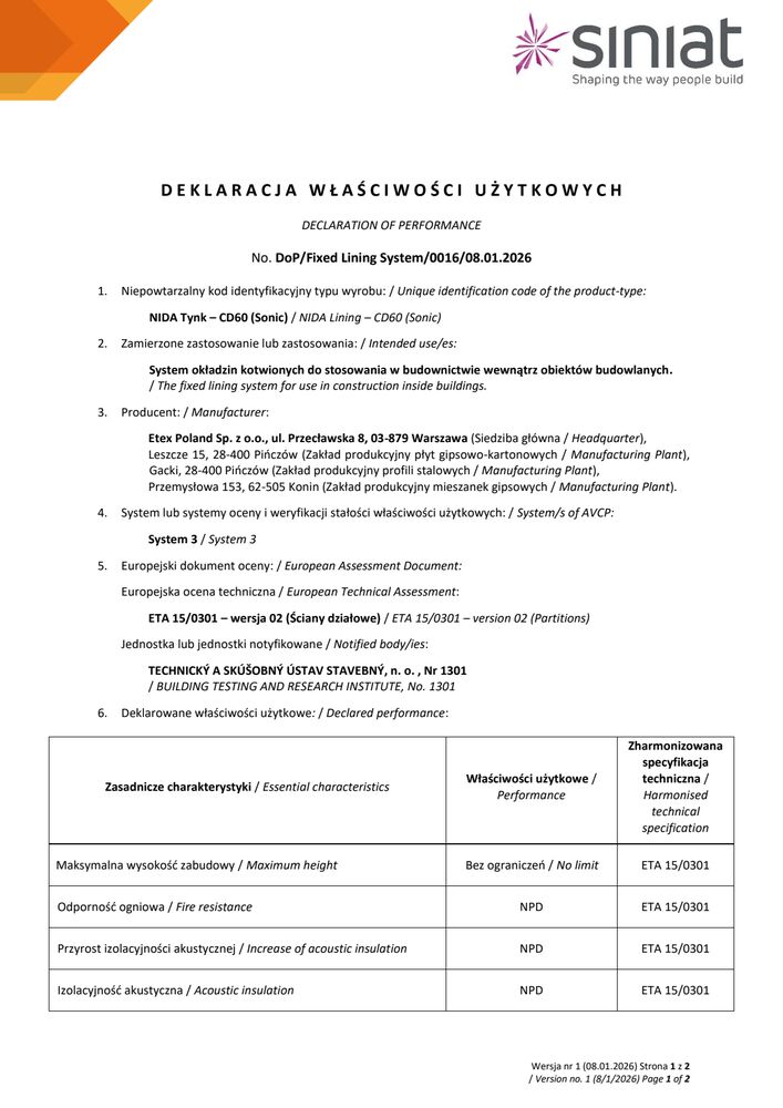 Znajdziesz tutaj wszystkie niezbędne dokumenty techniczne Siniat. Klasyfikacje ogniowe, deklaracje właściwości użytkowych, karty produktów a także katalogi techniczne systemów suchej zabudowy.