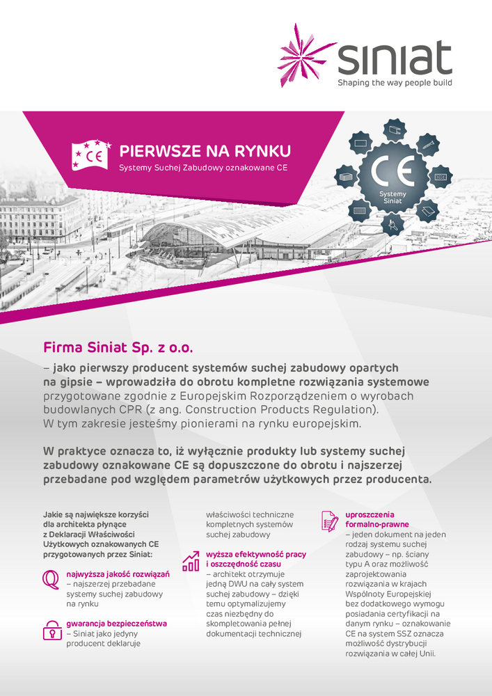 Znajdziesz tutaj wszystkie niezbędne dokumenty techniczne Siniat. Klasyfikacje ogniowe, deklaracje właściwości użytkowych, karty produktów a także katalogi techniczne systemów suchej zabudowy.