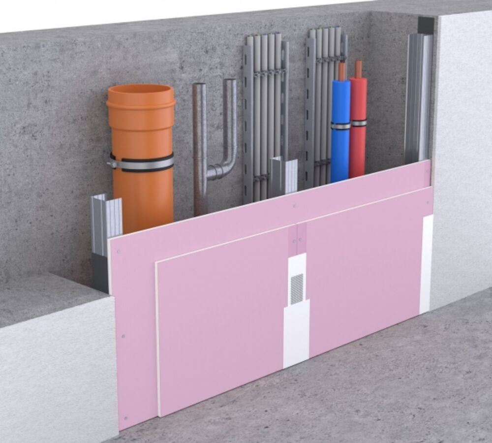 Systemy obudowy pionów instalacyjnych stosuje się najczęściej w celu ukrycia tych pionów, występujących w każdym budynku bez względu na jego funkcję i przeznaczenie. Z uwagi na możliwość przenoszenia dymu lub ognia z kondygnacji objętej pożarem na inne poziomy budynku piony instalacyjne, biegnące zwykle przez wszystkie piętra obiektu, muszą być odpowiednio zabezpieczone. W tym celu stosuje się systemy oparte na płytach gipsowo-kartonowych Nida Ogień Plus (Typ DF) lub Nida Woda Ogień (Typ DFH2) o grubościach 12,5 mm, 15 mm, 20 mm lub 25 mm, mocowanych do pośredniej konstrukcji nośnej z profili metalowych Nida C lub bezpośrednio do ścian i stropów pomieszczenia bez konstrukcji nośnej. Systemy obudów pionów instalacyjnych z wykorzystaniem płyt gipsowych Nida pozwalają zabezpieczyć przed przenoszeniem ognia tą drogą do klasy odporności ogniowej EI 120. Dodatkową funkcją tych systemów może być również ochrona akustyczna pomieszczeń od dźwięków dochodzących z wnętrza szybu, spowodowanych np. przepływem powietrza, systemem kanalizacyjnym czy wibracją instalacji